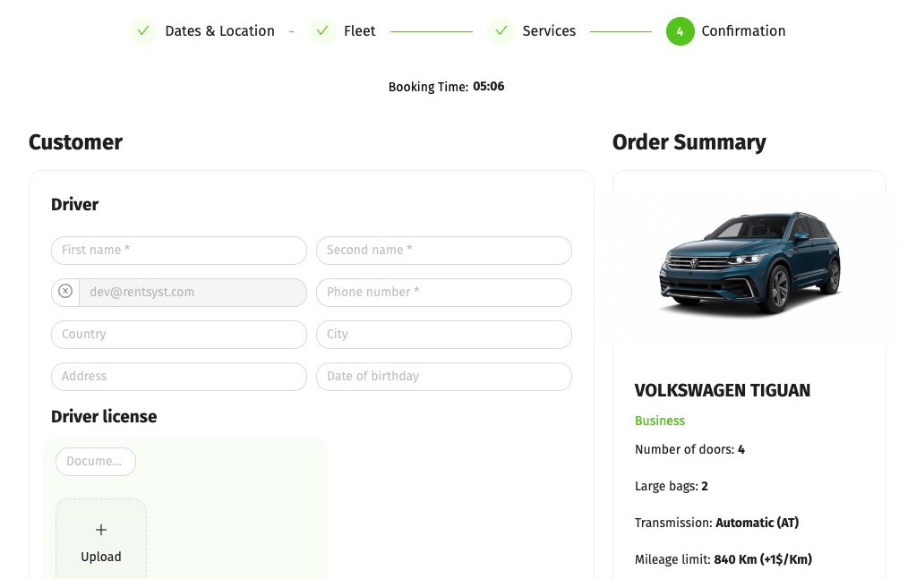 การกรอกข้อมูลส่วนตัวและการติดต่อก่อนเช่ารถ